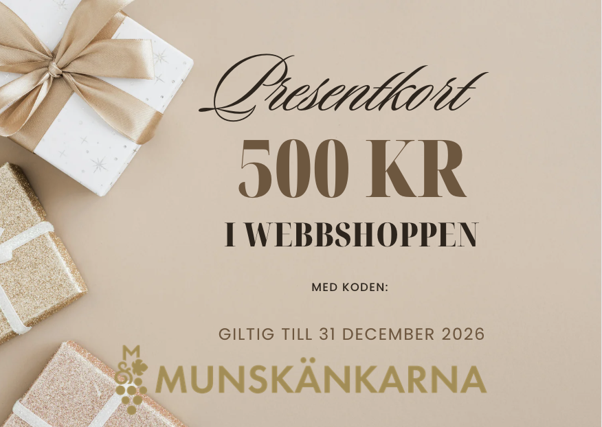 Välj mellan 500, 1000 eller 1500 kronor. Vi skickar ett digitalt presentkort till dig via mail, med en kod som du sedan använder i webbshoppen.